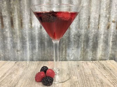 Add Raspberry Liqueur, cranberry juice and champagne to a Martini glass and stir lightly. Add fresh raspberries and/or blackberries.